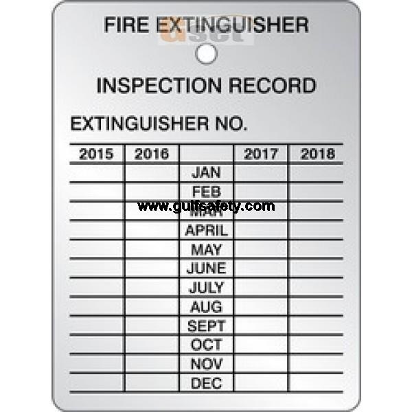 aluminium tag for fire extinguisher. size: 75mm x 60mm. ;0.5 mm thickness with inspection calendar |