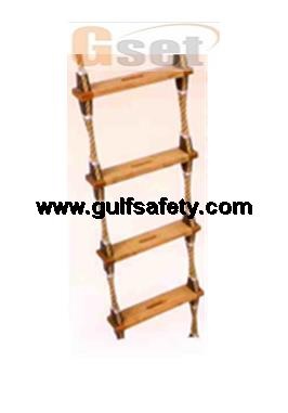 | rope ladder- ( length : 27.43 mtr) material used : manila rope (18 mm / 20 mm) with certificate, malaysian flat wooden step ( 525 mm x 115 mm x 25 mm), plastic chokes for holding steps and hand tied with tarred marine ) with continues rope ( with conformity certificate) |