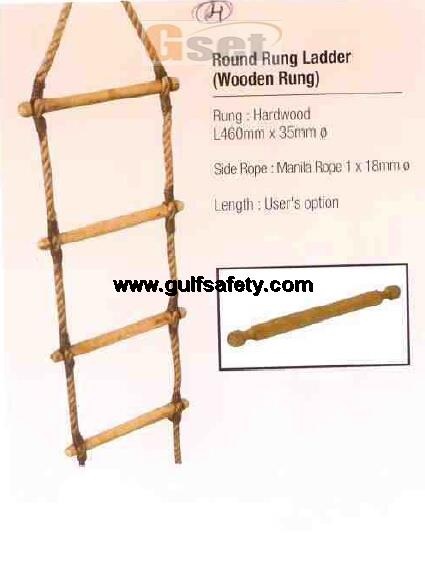 | rope ladder (manila rope) with round wooden steps, step size- 460mm x 40mm 5 mtr length, side rope- manila 1 x 18 mm dia with workshop certificate |