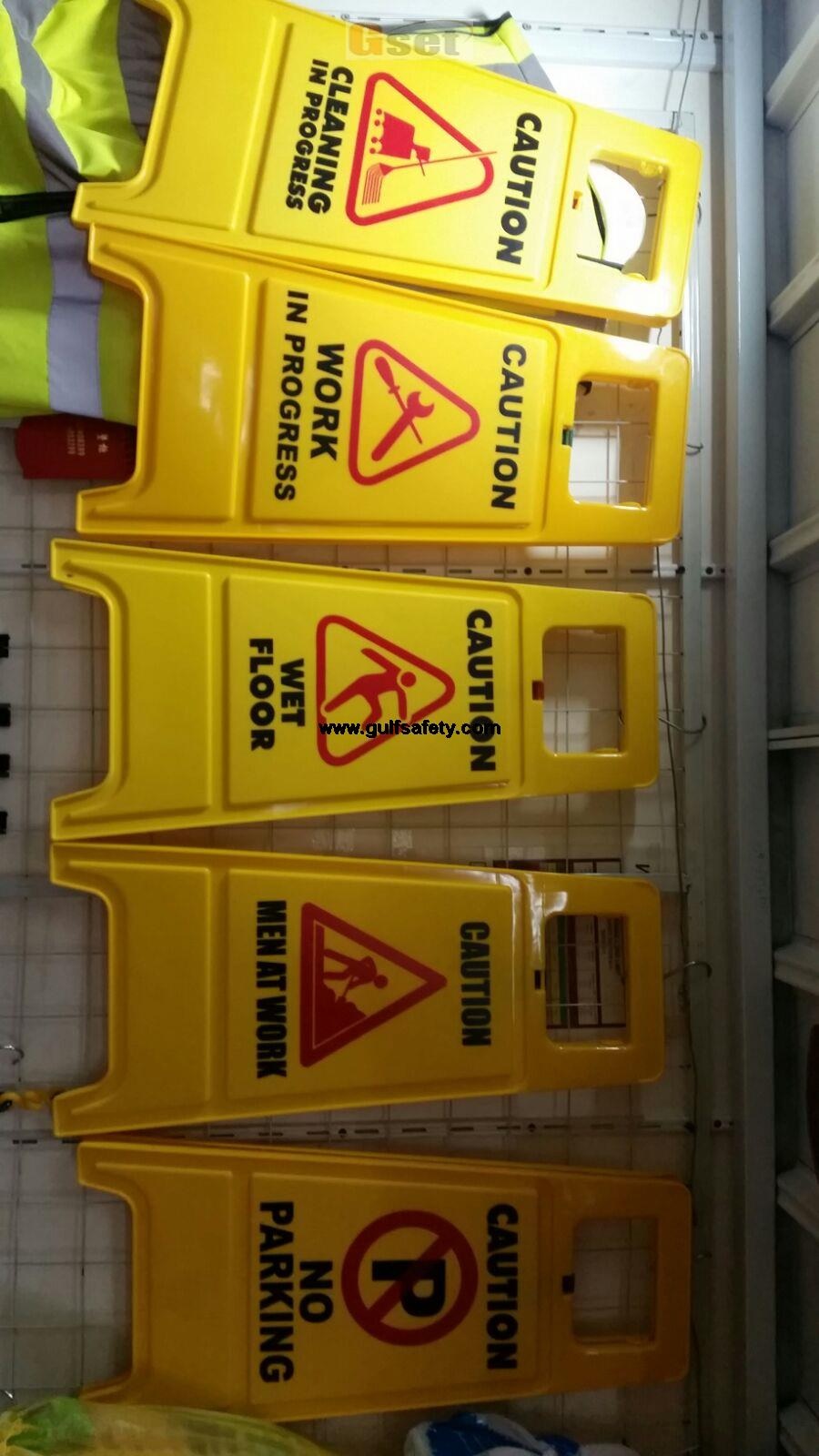 signage board ” caution wet floor “, “men at work”,”work in progress”